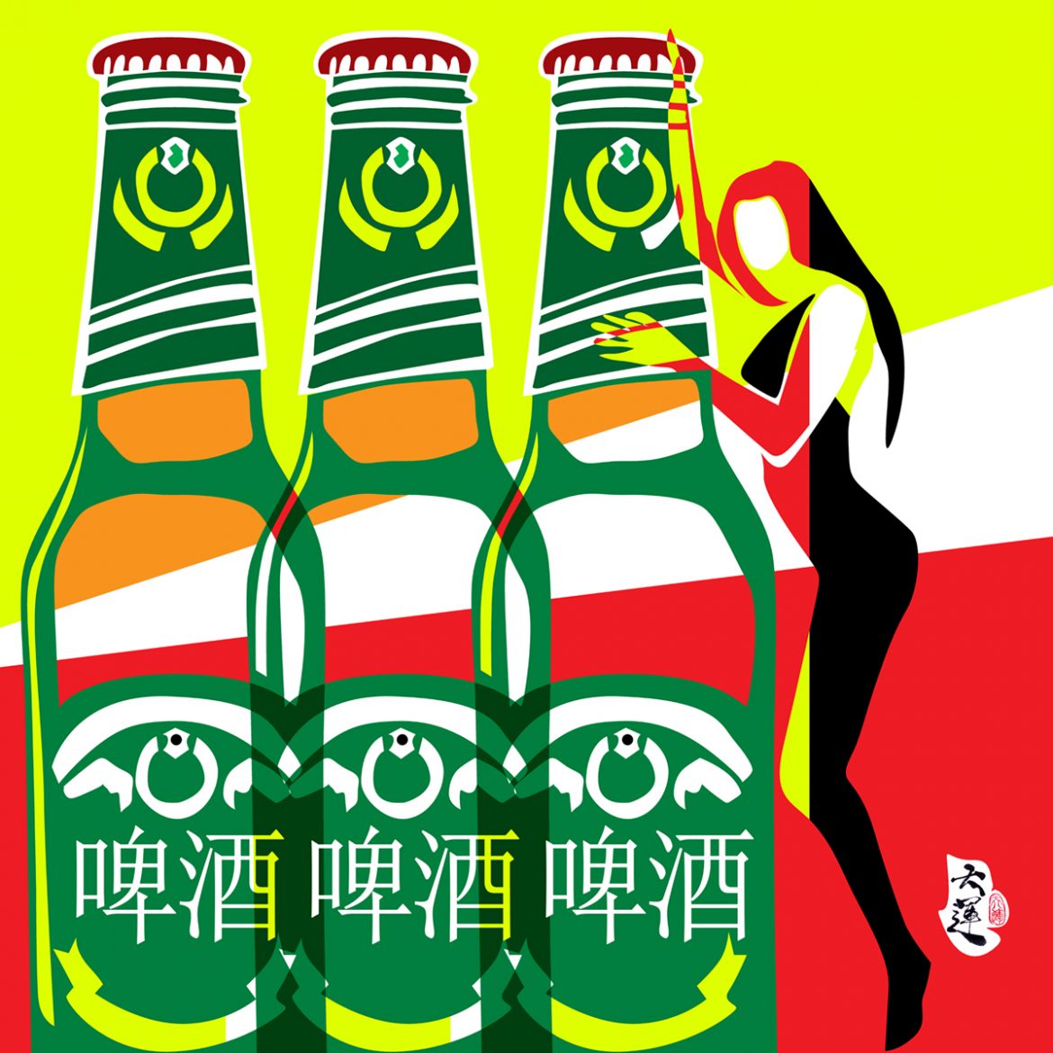 画:啤酒女郎 (朱明富)