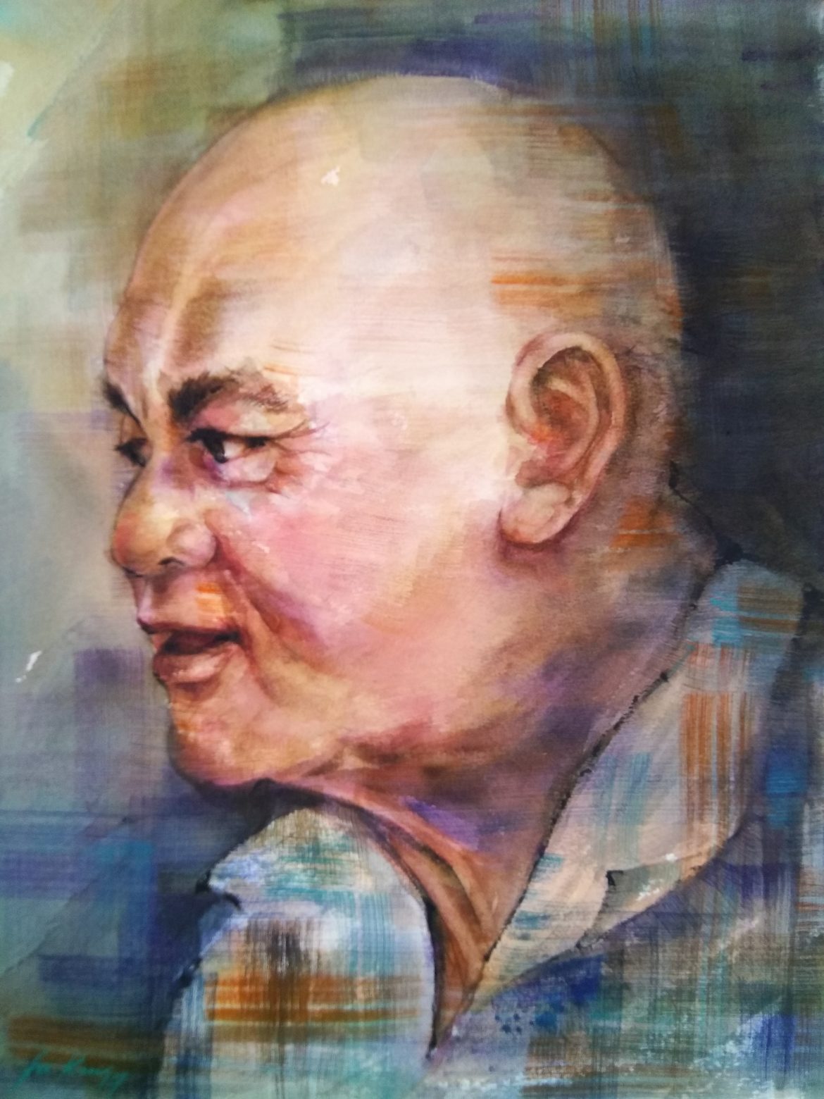 所以,在我受推荐参与仁川国际艺术节展出时,我脑海里就浮现了他的形象,并以他为题材完成了这张《父亲》,让他的画像去韩国走一趟。