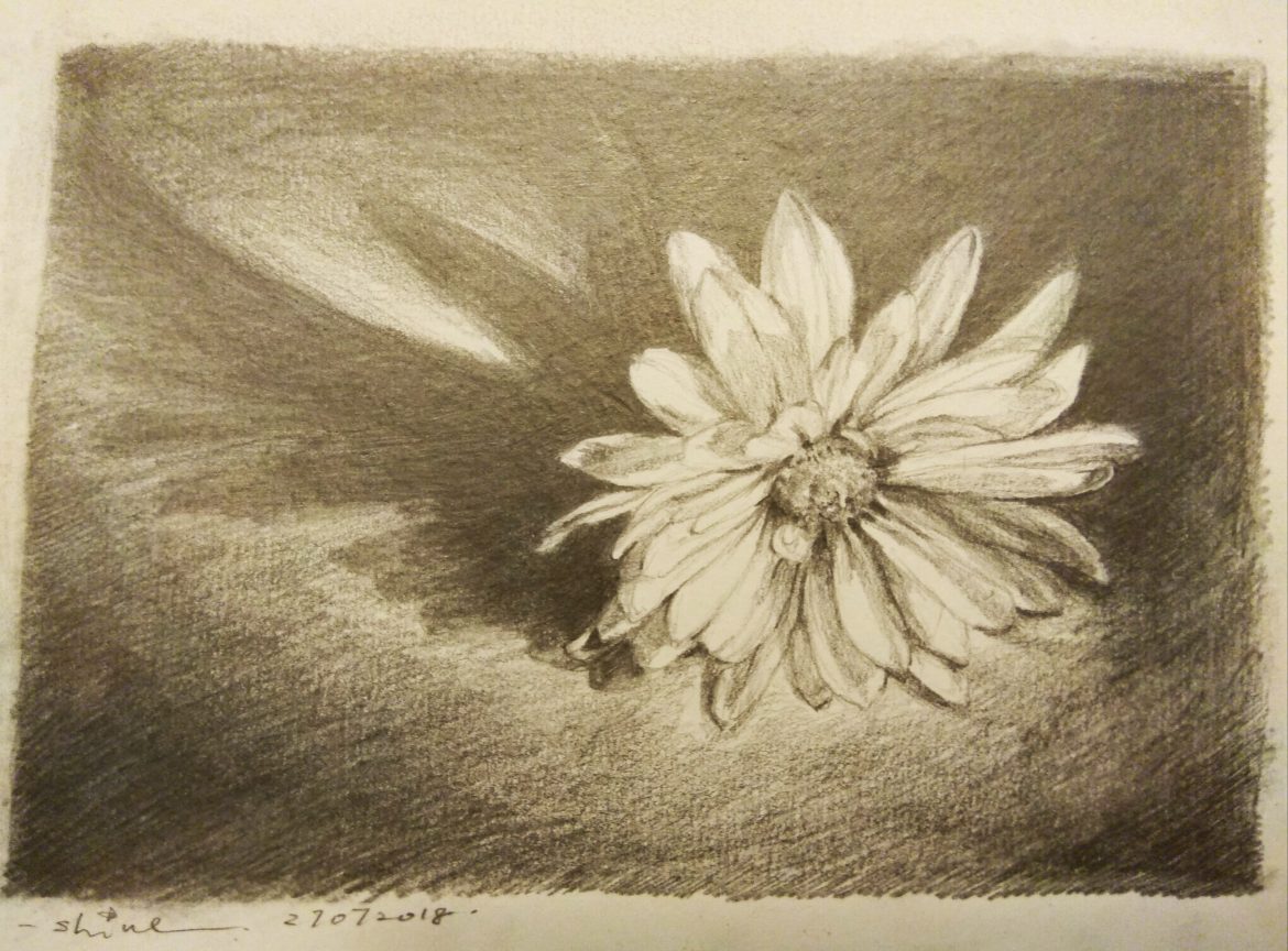 我画的是白菊(是从网上找的照片画成素描)。白菊有悼念的意义,也有高尚的含义。我个人觉得很像老师。
