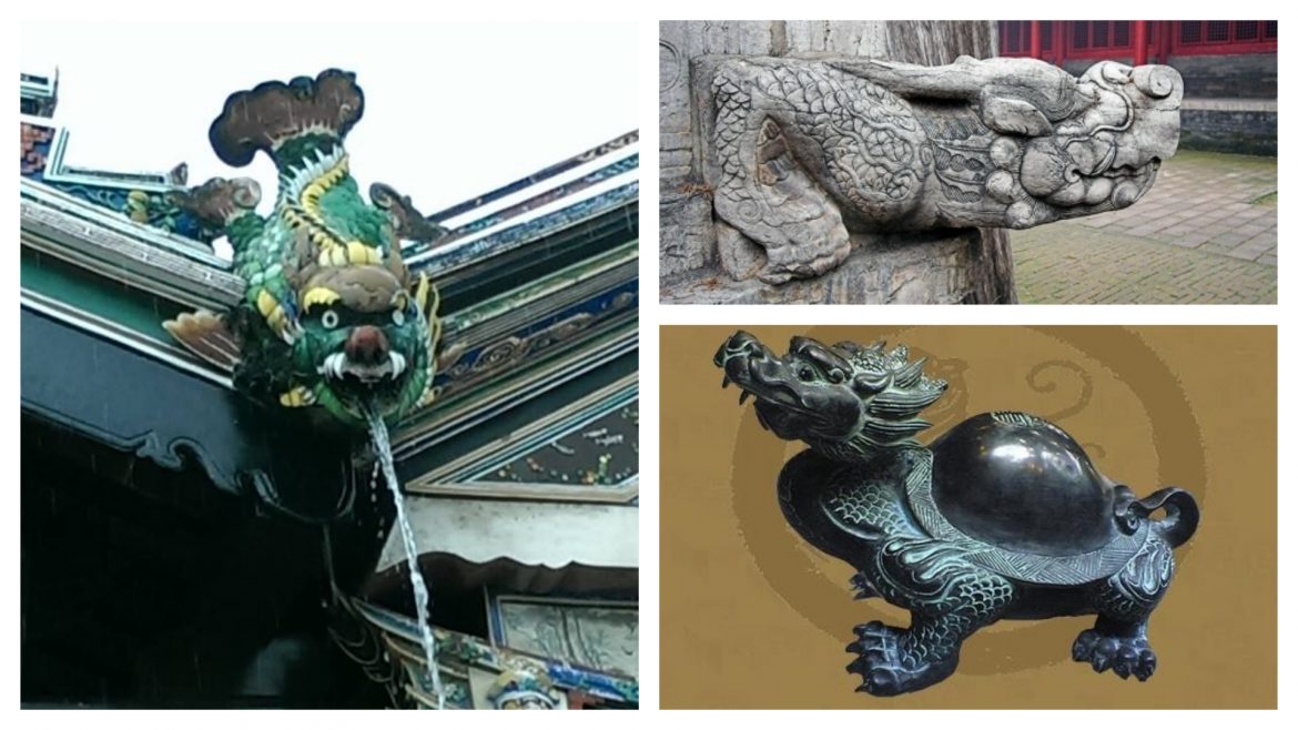维基百科上把“螭首”和“螭吻”分开,这样的说法有待考证。个人认为二者应该是系出一脉,只可惜上古之物,难以考证。这一点,就姑且存疑吧。山东孔庙大成殿外的“螭首”,可以明显看得出也是龙头鱼身状,也是做为排水之用。