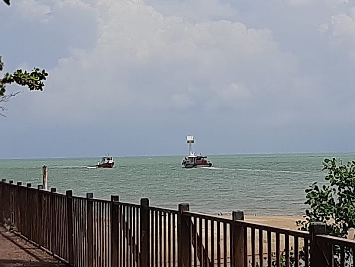 宗平法师和另一位尼师抵达之后,雨停了,风和日丽。尚好抱着妳的骨灰上船,我和三个孩子,两位法师,贤章夫妇,蔓慧,加上Timothy, 德和,德安和美云,参与了这粉尘撒海的仪式。在诵念南无本师释迦牟尼佛之下,船驶出了海口。