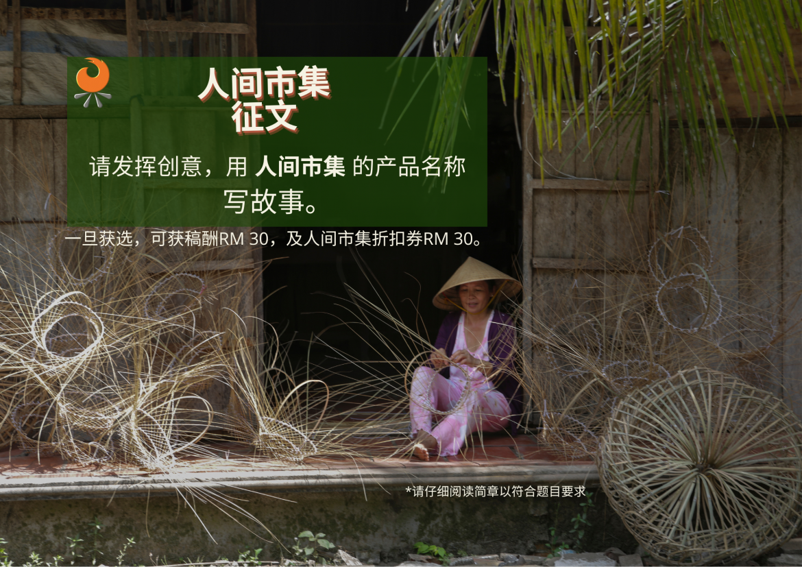文章一旦获选,即可获得RM 30的稿酬及人间市集折扣券RM 30。作品也会发布于《人间烟火》平台,让读者投票。