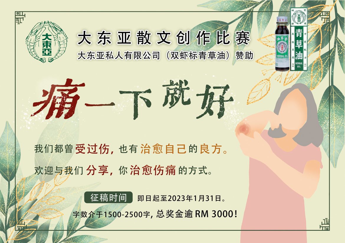 入选佳作10份,每名 RM100 现金 + RM20 双虾标青草油 e-voucher
