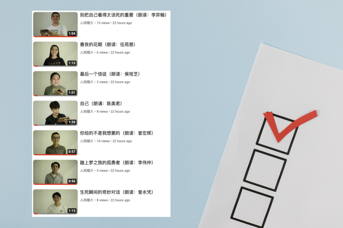 1.1K 我们从《谢师会:当你被世界辜负》的专题投稿中,甄选了7篇好文,并请演员录制了视频。现在,诚挚邀请您帮忙投选出心中最佳。 获得最高票数的5个优秀作品将各赢得两张《谢师会》舞台剧门票。 点击这里查看专题文章。 Share 0 FacebookWhatsappTelegramLINEEmail 上则 羁绊 下则 告别