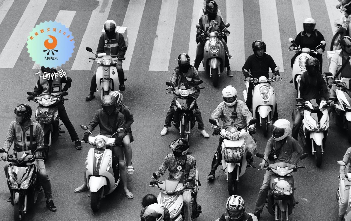在望不到尽头的堤上,轰鸣声长居于此。大量废气带着灰蓝色的油雾肆无忌惮地排放,老烟枪在浓烟里锦上添花,与大家共享肺癌盲盒的喜乐。摩托车之间的空缺不被允许出现,是堤上奉为圭臬的最终教条,任何空缺都会引来鸣笛催促。在一座座孤岛上,同一的目的将大家牢牢系在一起,成为零和游戏里短暂的竞争者。