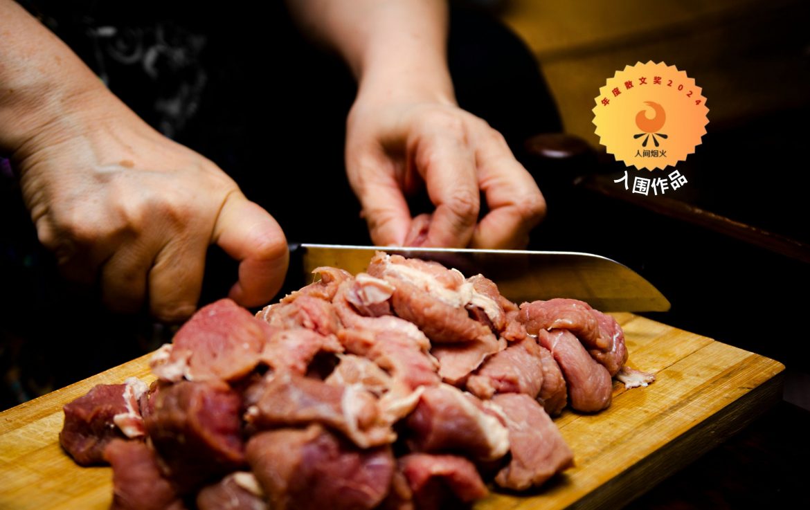 桌上被大卸八块的排骨堆叠起一座肉山,粉色装饰它的鲜,乳黄色凸显它曾经的三餐富足。十七楼的窗外无垢,亮灿灿的蓝天外,找不到一只嗜腥的蝇。