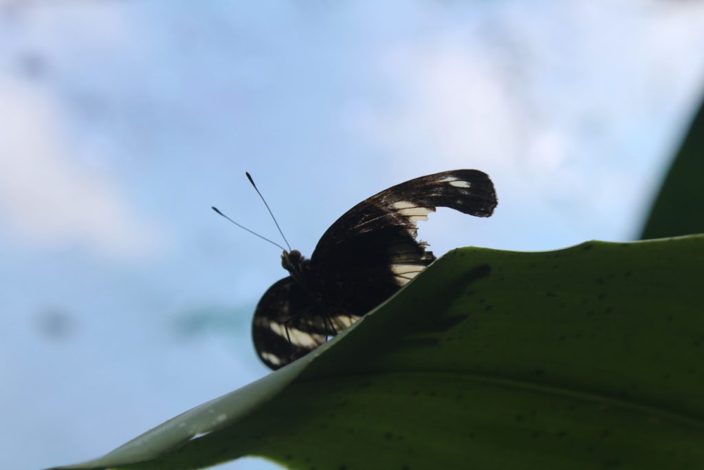 这场游戏,我玩了许久,直到一种微妙的默契在我与蝴蝶们之间悄然而生。我在它们舞动时静静欣赏,而它们似乎也察觉出我的友善,不再视我为天敌。于是,它们在我面前肆意敞开自己的美丽,与同伴们嬉闹追逐起来。我时而专注拍摄,时而轻抚叶片,时而坐在石椅上歇息。就这样,我的摄像机里照片愈来愈多,直到相机容量达到极限。我拂去白色衬衫上的汗水,终于心满意足地离开了公园,仿佛终于把这间蝴蝶公园里所有翩翩舞者尽收胶片之中。