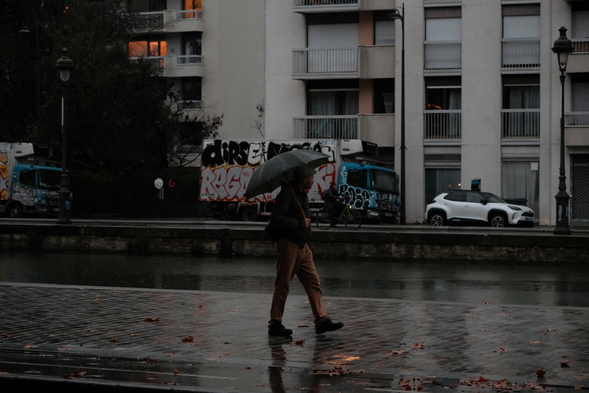 回程看见倒在地上的树,好像听到它在哀嚎?车行驶得不快,但枝桠满地、树叶随行却感觉像急驰在异地里,还带着点荒凉。